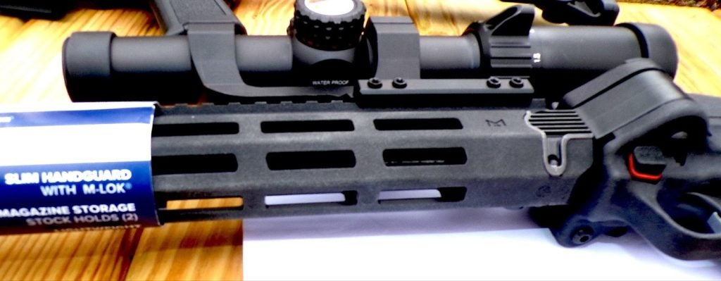The M-Lok handguard and Pic rail on top make mounting accessories easy.