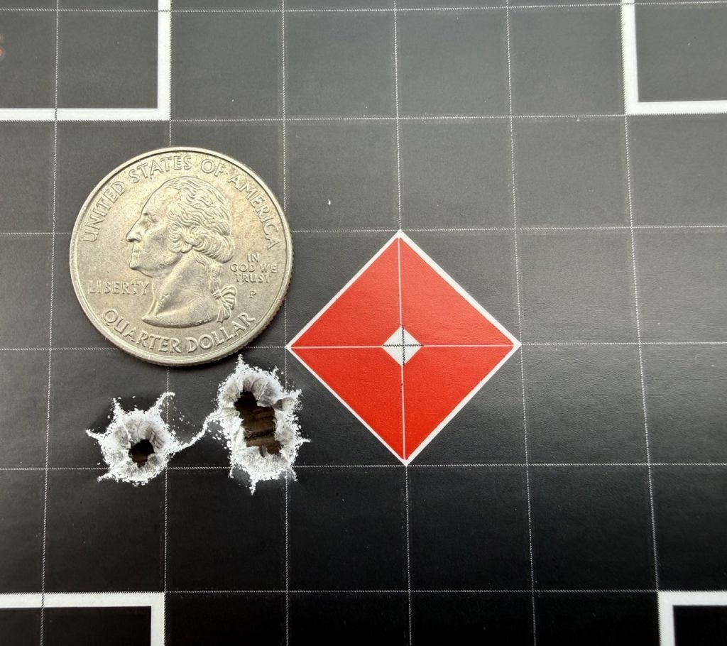 The 100-grain GameKing, though, was even tighter. All three groups averaged around 0.74 inches, with one group that came in at 0.56 inches. I triple-checked my measurements because I honestly didn’t expect such affordable factory ammunition to shoot that well out of a budget rifle. But there it was, three rounds clustered together just over a half inch across.