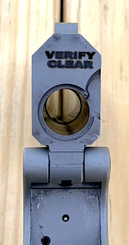 Here’s something to think about…. I have a small, round steel target that hangs about 20 yards in front of my shooting bench, off to the side. I was curious, so I grabbed the gun and parked about 15 yards out. I aimed and shot, and hit it more often than not. I was pleasantly surprised that this close-range, “get-off-me” gun could ring steel that far away.