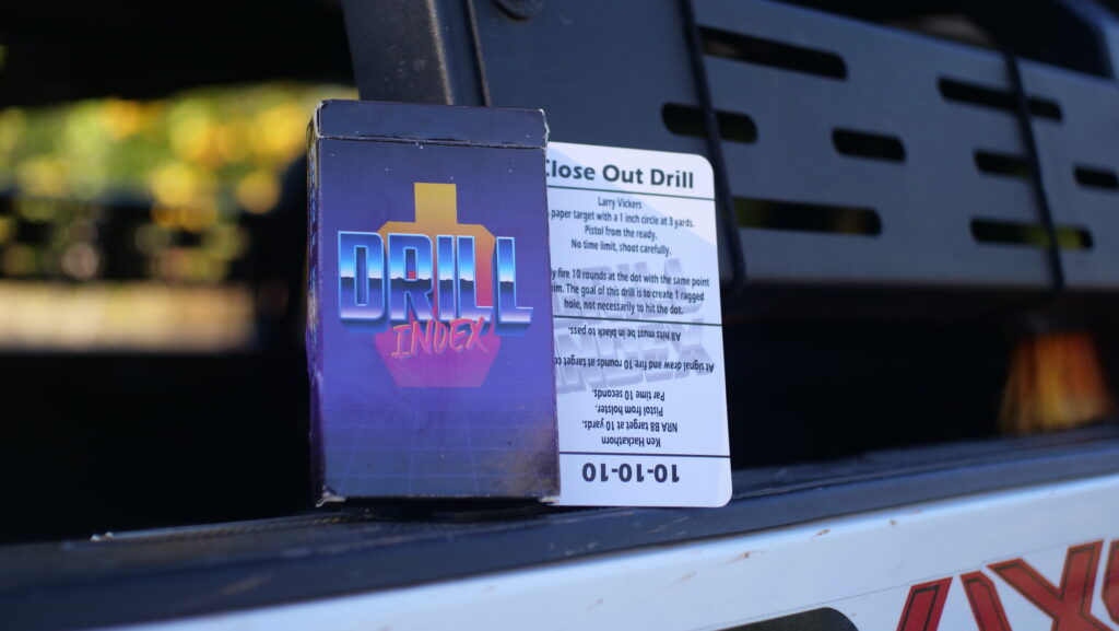 Admittedly, this is hard for me to do. That’s exactly why Larry Vickers’ Close Out Drill is a favorite for winding down at the range. This week’s Drill of the Week is all about ultra-precise shot placement, focus, and zen-like execution. Personally, I think it’s a rather good way to end any range session, kind of like a cool-down exercise after a particularly hard gym session. This week, once again, I’ve drawn this drill blindly out of my Drill Index deck.