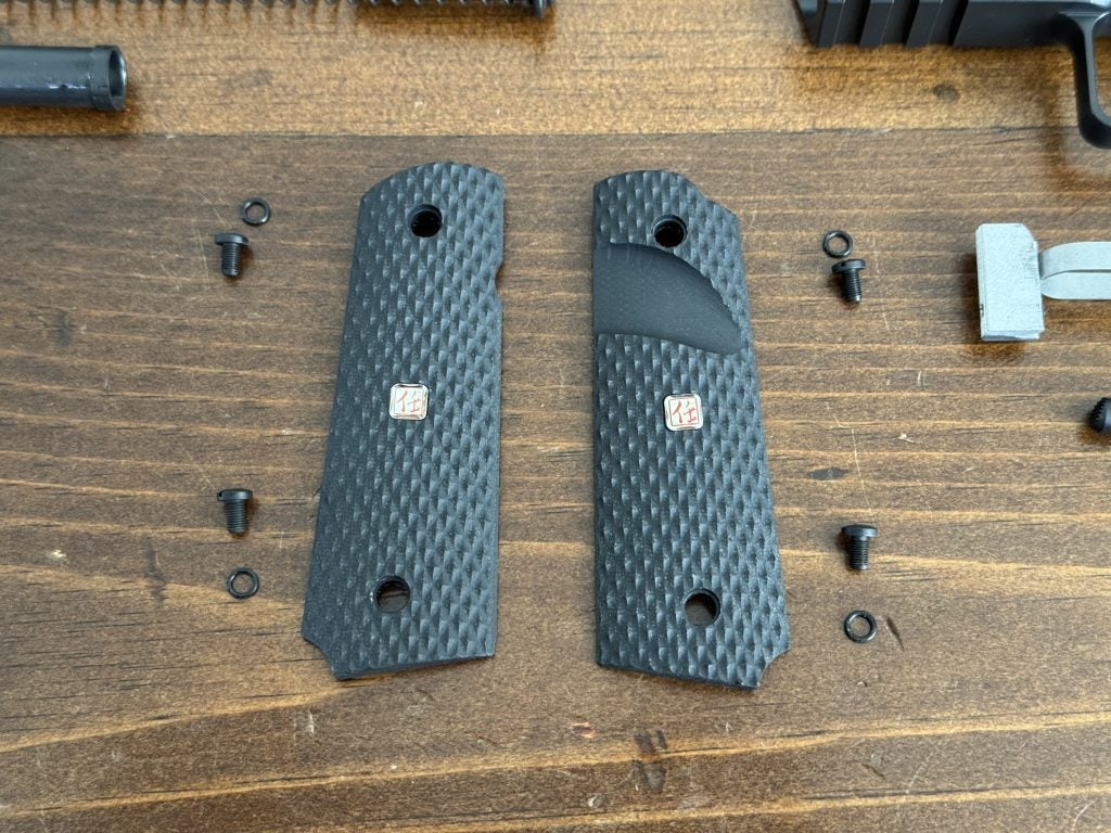 The ‘Master Class’ MIM parts include the ejector, hammer, hammer strut, mainspring housing, firing pin stop, and disconnector. While traditional production 1911s often use a MIM sear, this 10-8 sear does not appear to be MIM, as no casting marks are visible like those on the other listed components.