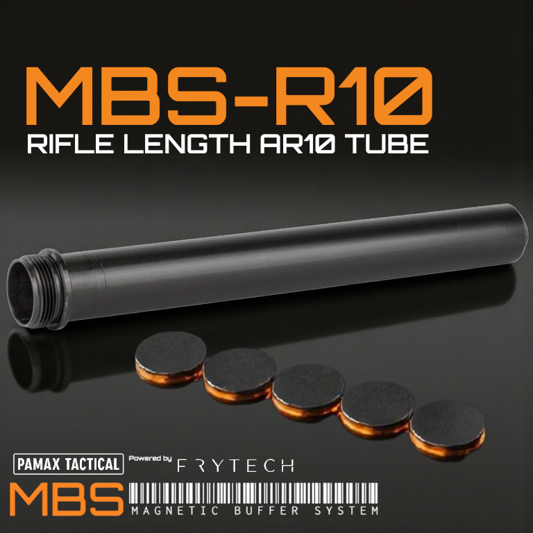 The magnetic buffer is engineered for both rifle (MBS-R10) and carbine-length (MBS-C) systems. This allows the proper number of magnets to be placed in the tube for maximum recoil reduction. In an AR-10, the rifle length provides consistent recoil impulse, improved cycling, and optimized bolt travel. Rifle tubes provide the space to use more magnets that are specifically tuned to handle the heavier weight of the AR10 / DPMS Bolt Carrier Group in order to tune one of the most comfortable recoil control options on the market.