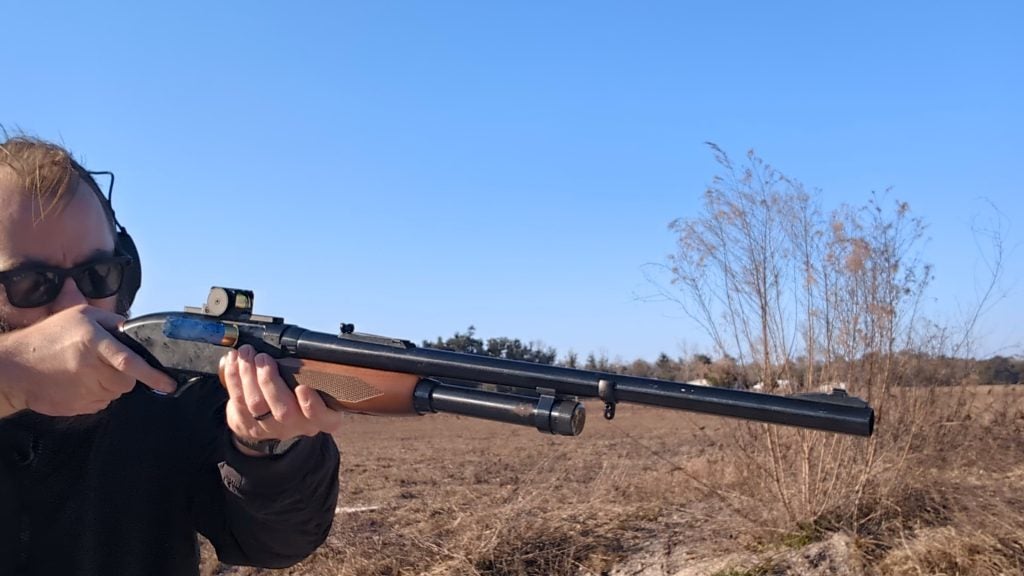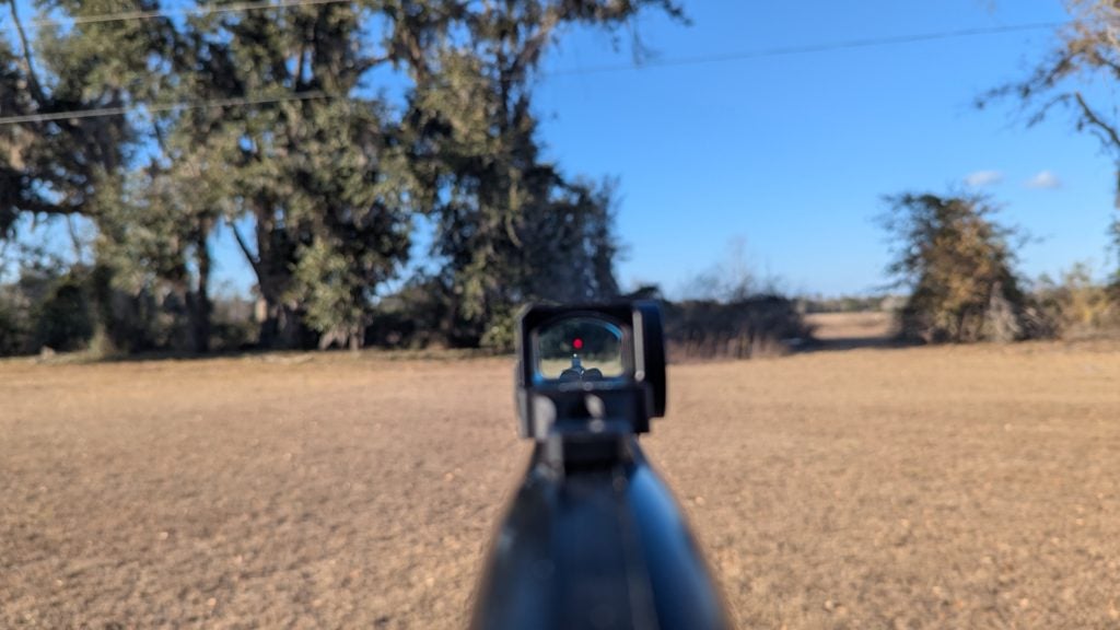 No POA/POI issues, no slow-to-align sights; just put the zeroed dot on the target and go. I zeroed this dot to hit about the center of my buckshot’s spread. It creates a great all-around aiming point and lets you go fast.