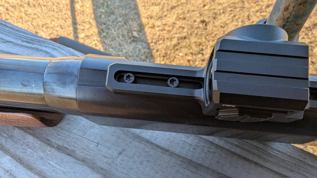 It’s made up of a small rear slot that serves as your base attachment. In front of that micro single slot, there is a slightly longer slot that allows you to position the second screw at several points. In front of the optic is a long slot that makes it easy to position a second and third screw just about anywhere on the receiver. The slots are counterbored to help ensure good contact with the receiver.
