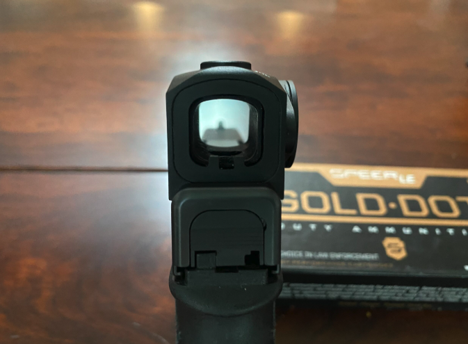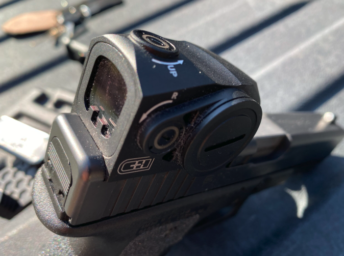 - Optic: Slide milled by C&H Precision and fitted with their Duty Optic, a closed-emitter reflex in the Aimpoint-ACRO class. This is a duty-grade optic: one-piece CNC aluminum, IPX7 waterproof, fully shockproof for +P use, featuring a 3 MOA dot that stays crisp even with mild astigmatism, ten brightness levels (two NV compatible), motion-sensing wake, and a long-lasting CR2032 battery. It’s bigger than a micro-dot, but it’s built for hard use and clear, fast acquisition.