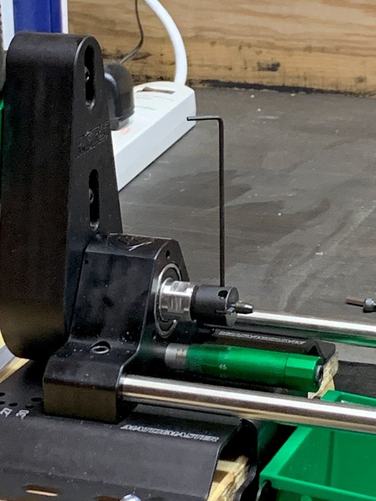 After assembling the unit according to the directions – that should take about 15 minutes, using standard tools – and mounting it to your bench, you’ll need to install the proper pilot for the caliber you’re working with. You can see the ones they include with the unit above, and others are available from RCBS.