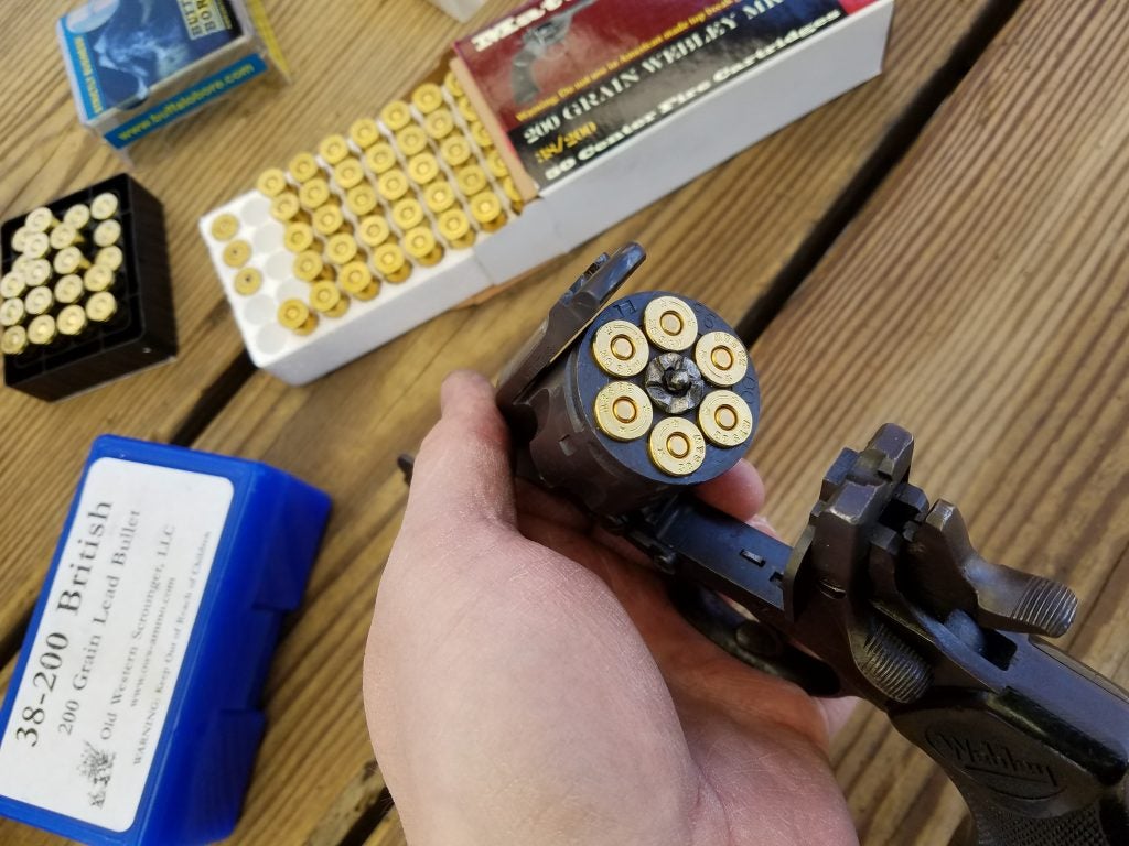 Finding correct .38/200 ammunition used to be tricky. While Webley revolvers will safely fire common American .38 S&W loads, the lighter 146 grain bullets typically impact 6 to 8 inches low at typical defensive distances. Still, for many years it was more common than .38/200 loads. Between availability, and usually being a little cheaper than .38/200 loads I have used a lot of it over the years. I have had some recent success finding correct loads though, and actually helped make one possible.