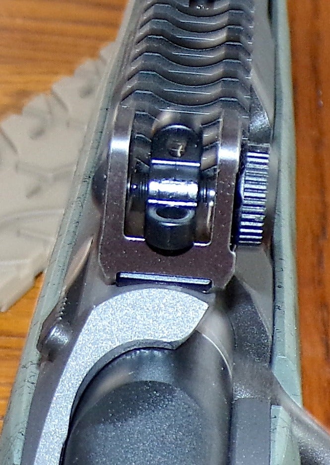 Logo, sight, and bolt release. The bolt comes out easily enough for cleaning.