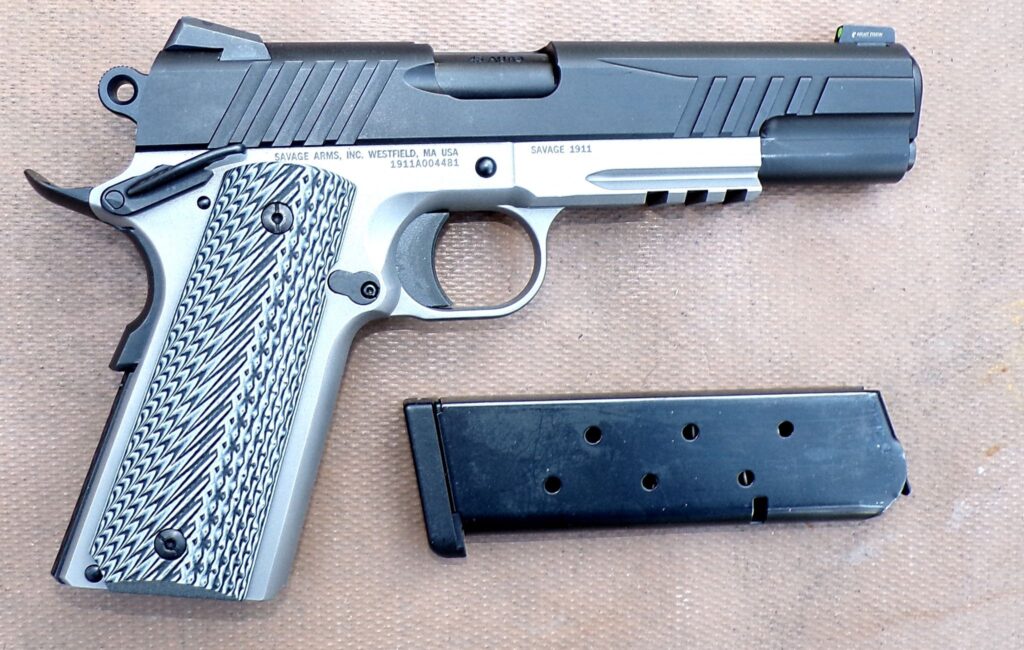 That was before there was such a plethora of makes and models on the market. I own, or have owned, several 1911s and enjoy shooting them. With its modern iteration the 2011, I enjoy shooting them even more. Just today I shot this Savage, and also a 9mm MAC 9 2011. Both were nice … look for the MAC9 review soon. But this Savage … very nice! Let’s look at it.