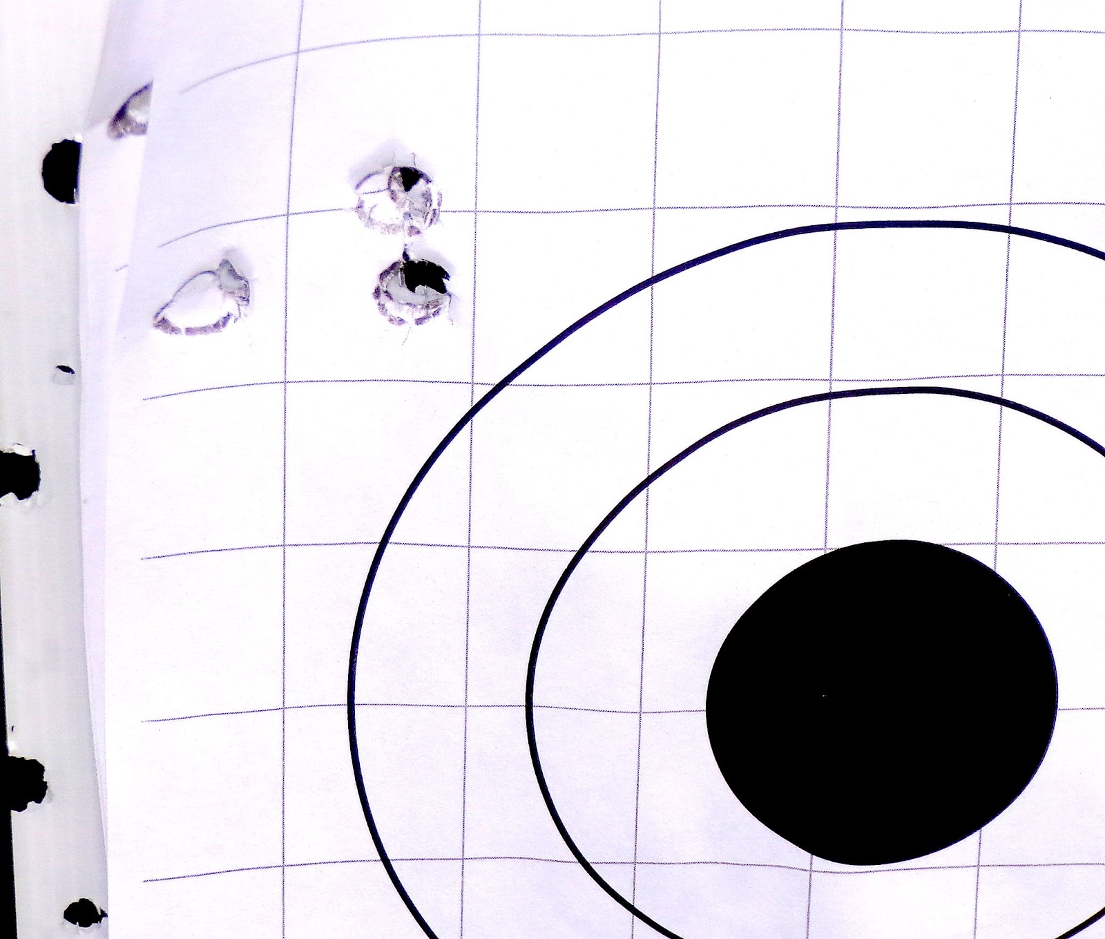 It didn’t like the Bear Load at all, so no targets from that. Here’s one from the MagTech load. It was moving at 1355 fps, according to my Garmin Xero C1 Pro radar chronograph.
