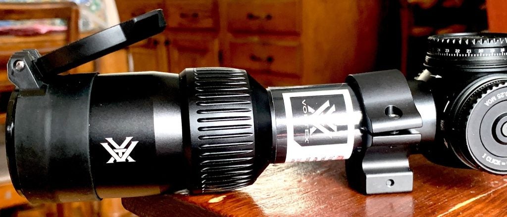 Lastly, this is a second focal-plane scope (SFP). That means that the reticle doesn’t “grow” with higher magnification, as it’s always the same size. That’s not necessarily a bad thing. I have another LVPO that is a first focal-plane (FFP) scope, and the reticle is difficult to acquire at low magnification.