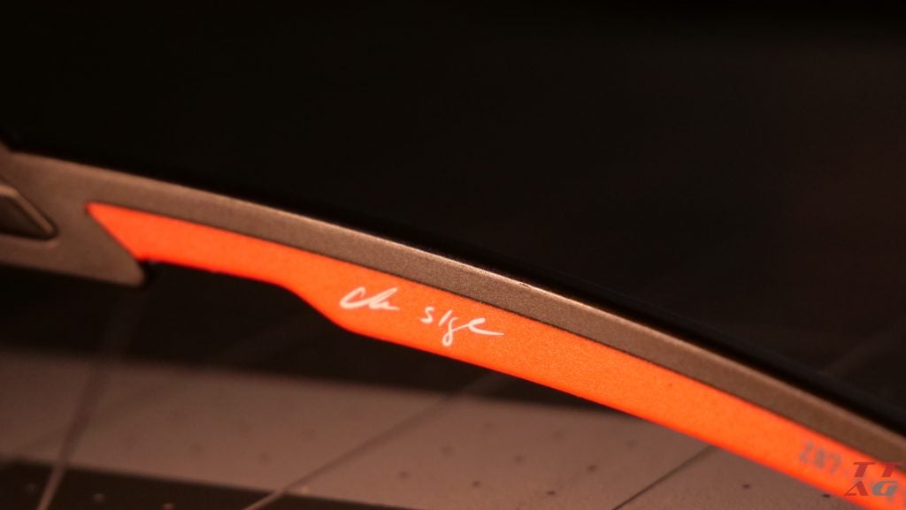 - Frame: Made from Triloid Nylon, known for its remarkable toughness and flexibility, the matte-black semi-rimless frame features red rubber accents that enhance grip and add a little bit of extra style. The “ultra-lightweight” frame weighs just 22 grams (0.78 oz), so it doesn’t add any significant weight to your EDC or range gear.