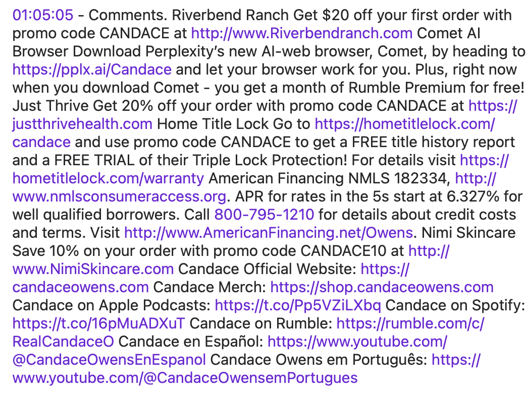 “Download Perplexity’s new AI-web browser, Comet, by heading to https://pplx.ai/Candace and let your browser work for you,” the description reads. “Plus, right now when you download Comet – you get a month of Rumble Premium for free!”