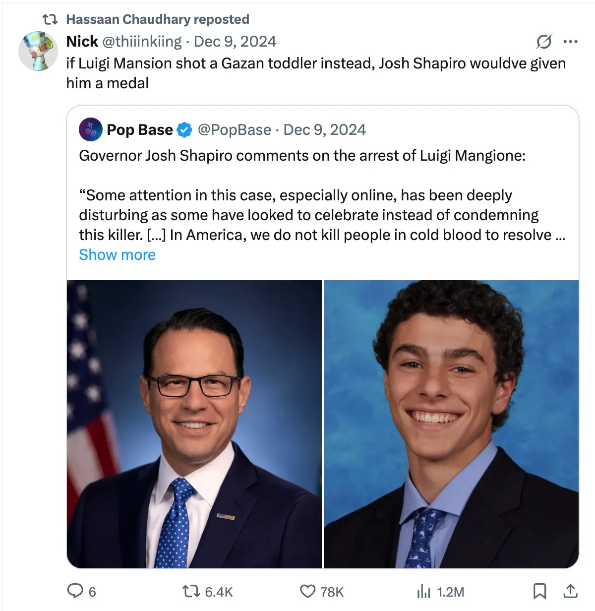 Chaudhary shared anti-Semitic content until at least December of last year, when he retweeted a post targeting Pennsylvania governor Josh Shapiro (D.), who is Jewish and pro-Israel. “If Luigi [Mangione] had shot a Gazan toddler instead, Josh Shapiro would have given him a medal,” the post read. Mangione is the accused murderer of UnitedHealthcare CEO Brian Thompson.