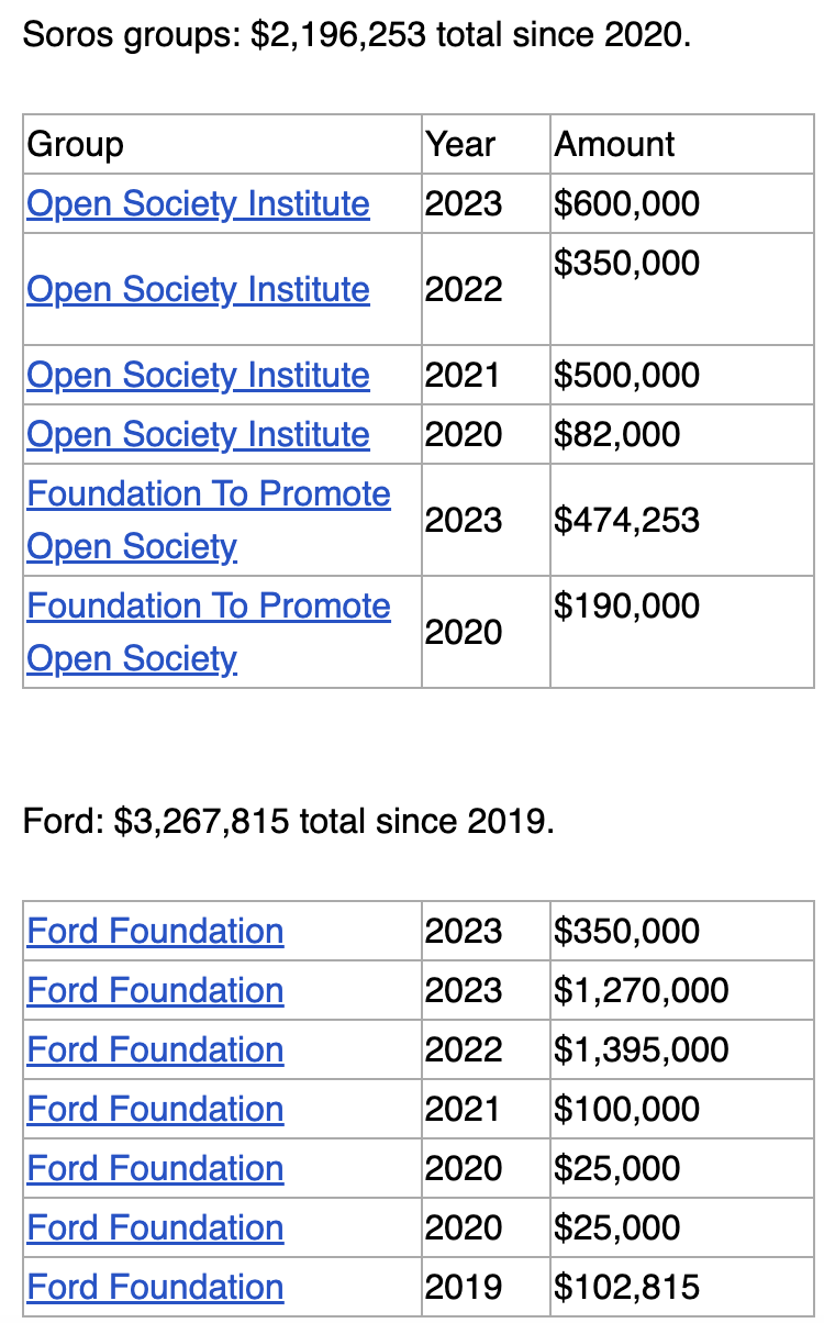 The 2024 annual report listed SOMO’s total assets at just over $5,843,000, meaning that the donations from the Ford Foundation and the Soros-backed groups compose a significant portion of SOMO’s operating budget.