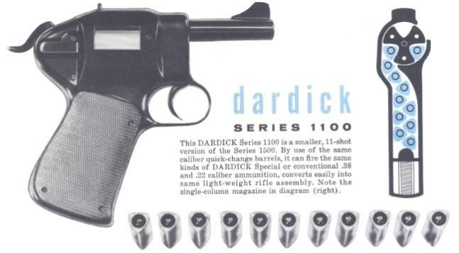 In a fairly smart move, the Dardick company produced adapters to allow a plastic case to fit over normal cartridges, like .38 Special. Still, this couldn’t save the too-cool and atomic-age-looking Dardick revolver.
